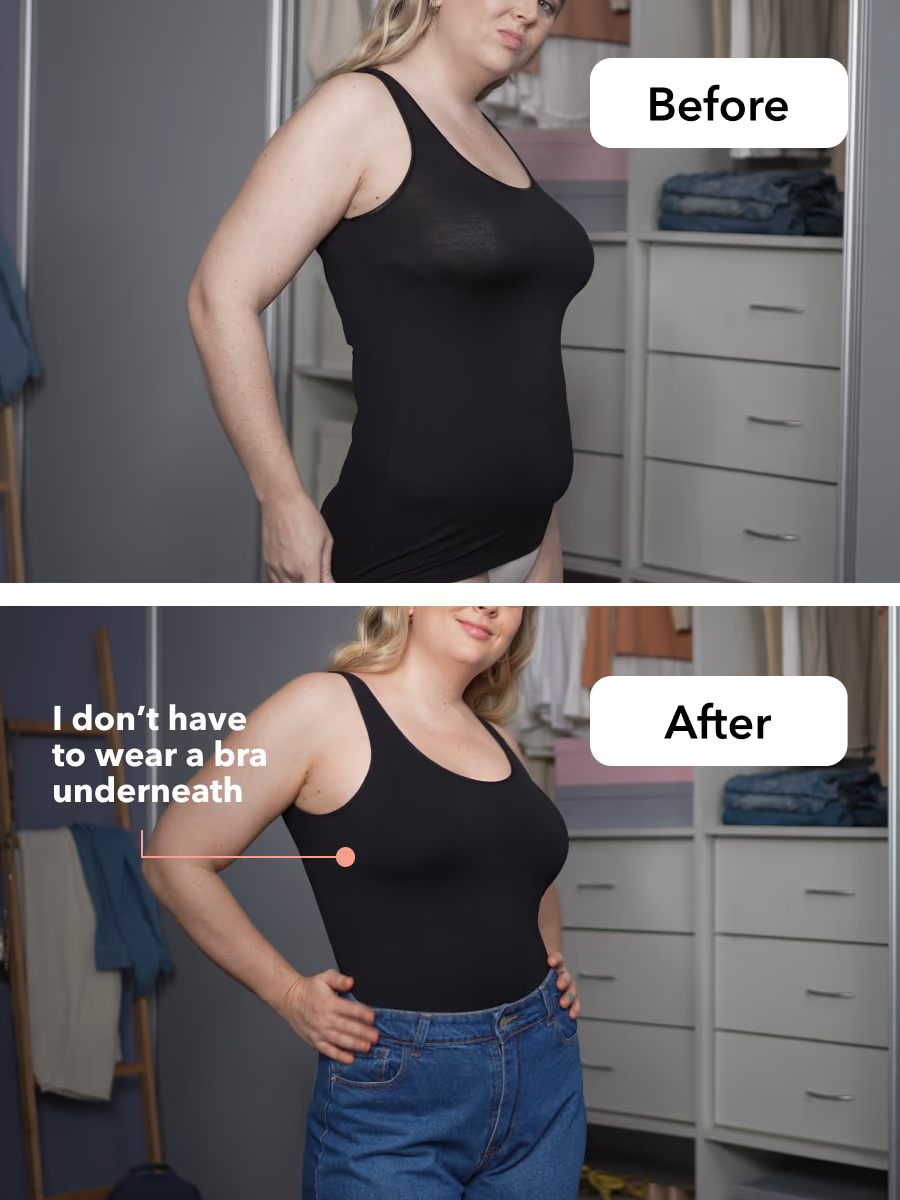 Whether tucked into pants or paired with leggings, its light compression material of this shapewear effortlessly smooths the back and sides without sacrificing comfort or breathability.